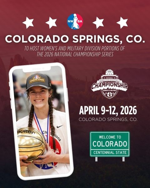 The National Wheelchair Basketball Association (NWBA) is proud to announce that the 2026 Women's and Military Division Wheelchair Basketball National Championships will be held at the U.S. Olympic & Paralympic Training Center in Colorado Springs, CO (CSOPTC). The National Tournaments will take place April 9–12, 2026, with competition starting April 10 and concluding on April 12.