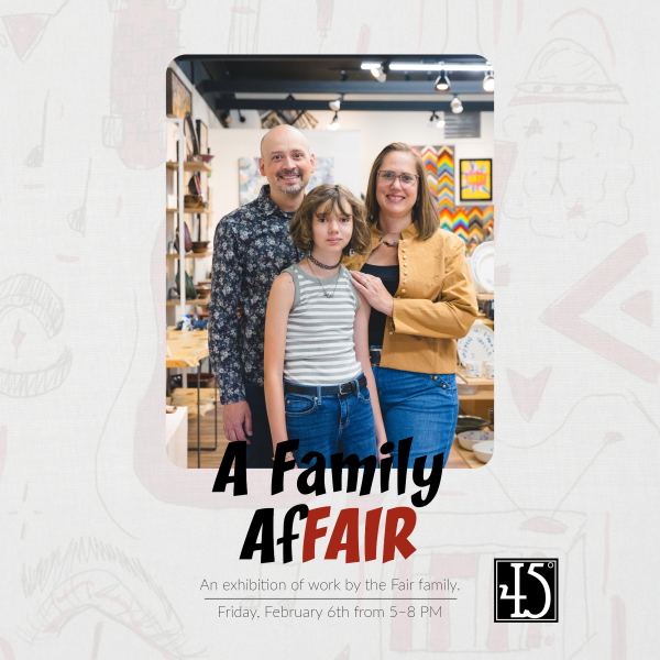 For February First Friday we invite you to “A Family AfFAIR”, featuring work by Emily, Reed, and Hazel Fair. We will each bring our own distinct style. Oil paintings by Emily, ceramic sculpture by Reed and pen and marker illustrations by Hazel. Join us for a First Friday that celebrates creativity, growth, and the joy of making art together.