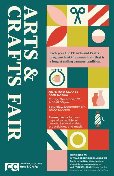Join us at the Worner Campus Center for the annual Arts and Crafts Fair! We are excited to showcase the work of over 80 artists, both CC students, and regional artists in a variety of media. Come support your community and find one of a kind of works to gift this season!