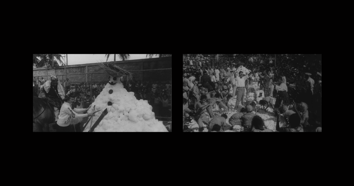 In Contemporary Film, Video, and Sound, each of the featured artists grapples with the possibilities and shortcomings contained in the official records of history. Currently on view, Sofía Gallisa Muriente’s Lluvia con nieve (2014) uses archival footage from 1955 of a US plane landing in Puerto Rico carrying two tons of snow.