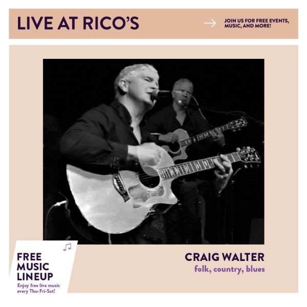 Join us for a night of authentic live music with Craig Walter, a talented singer, songwriter, and performer who’s been a familiar face in Colorado Springs for years. With a rich career spanning across the United States, Craig brings his unique blend of folk, country, and blues to the stage, creating a musical experience that feels both timeless and fresh.