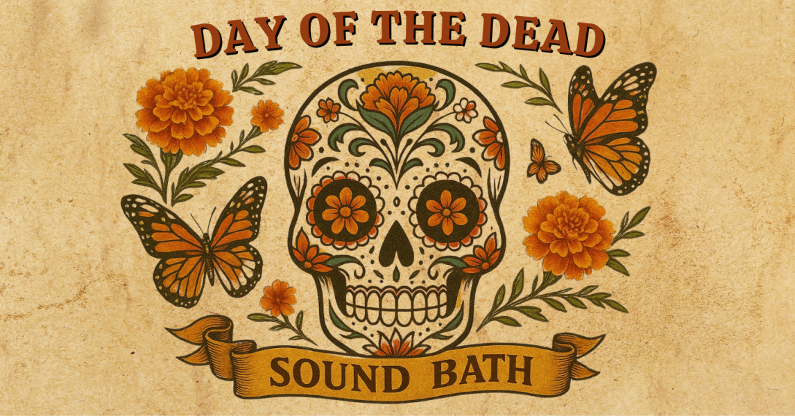 Our Día de los Muertos Sound Bath Concert calls forth unseen frequencies that shimmer and coil like echoes from another realm. Crystal bowls, gongs, flutes, and chimes converge in a spectral harmony—tones that whisper through the bones and awaken what lies just beneath the surface of silence.