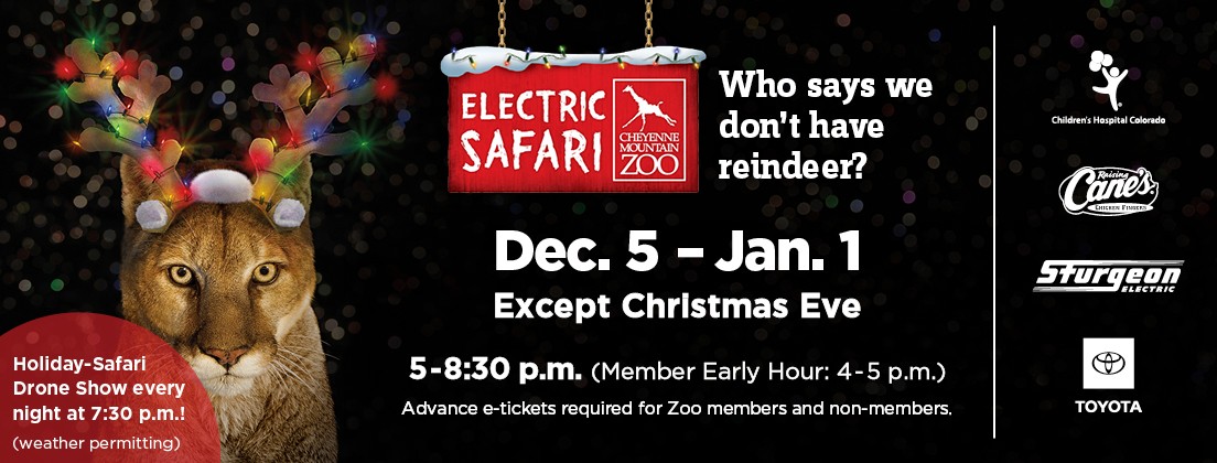 Electric Safari at Cheyenne Mountain Zoo is the only place in Colorado where you can enjoy a holiday-safari themed drone show, and explore 50 acres of one-of-a-kind light sculptures, twinkling light displays, and larger-than-life illuminated inflatable animals while hand-feeding a giraffe herd on the side of a mountain! (Drone show and inflatables are weather dependent). For five consecutive years, Electric Safari was ranked the 3rd Best Zoo Lights in the U.S. by USA TODAY’s 10Best Readers' Choice Awards—until last year, when it climbed to 2nd place. This year's event will celebrate 35 years of holiday cheer, and Santa Claus will be listening to wishes December 5 – 23. Come celebrate the holiday season with sparkling lights, animals and fun for the whole family! For tickets and all the details, visit cmzoo.org/electric.