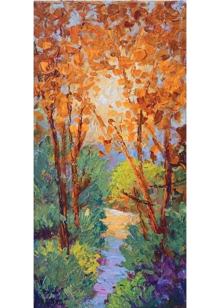 Light dances across Laura Reilly’s canvases, capturing fleeting glimpses of passing moments in time. Recent paintings play with the shifting reflections of light on water and as it filters through twisting leaves and wildflowers. Her landscapes are brilliantly saturated with color, giving them luminosity and movement.