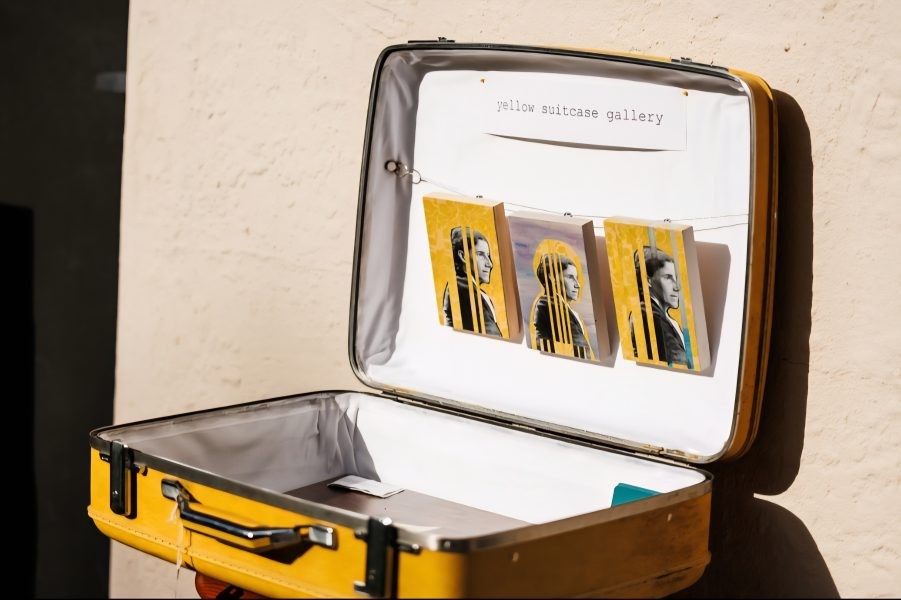 Inspired by OHL Petit Gallery, a little free gallery in Dallas, Texas, and the Other 50% of the Story at the Colorado Springs Pioneers Museum, the Yellow Suitcase Gallery was born from my desire to see more women's art in more public spaces. This pop up gallery is designed to showcase small works and celebrate the joy in unexpected art spaces.