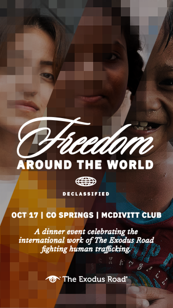Stories from the Front Lines: Hear untold, immersive stories of freedom and restoration from The Exodus Road’s Co-Founders, Matt and Laura Parker. They’ll share how teams in Brazil, India, Thailand, the United States, the Philippines, and Latin America are bringing freedom to survivors and pursuing justice for the exploited.