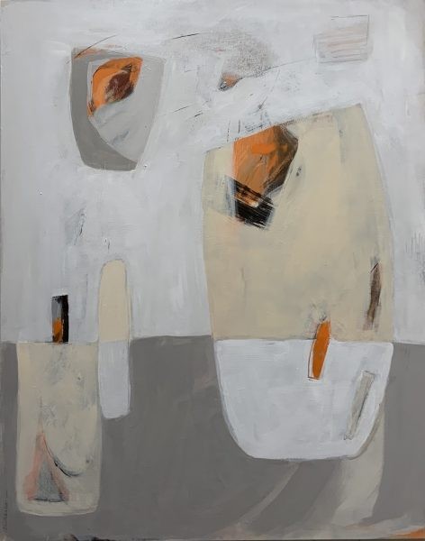My intention is to create images that draw the viewer into a mysterious but somehow familiar world through the universal language of proportion, balance, and harmony.It begins with despoilment—creating a mess on a pristine surface of canvas, paper, or wood. Random lines in charcoal or drippy paint, automatic writing, textured mediums, stenciled patterns, and splashes of color. Then the process of covering and uncovering, addition and subtraction, over and over again as I seek a resolution of the problems I have created. Pattern, texture, veiled shapes, and colors appear and disappear. My basic question is always “does it please me?” Some combination of color, shapes, lines that I am drawn to—undergirded by knowledge of design principles and color harmony—creates the feeling I seek. Occasionally this resolution happens rather quickly, but more often it takes layers and layers. The trick is recognizing the good things that show up by accident.