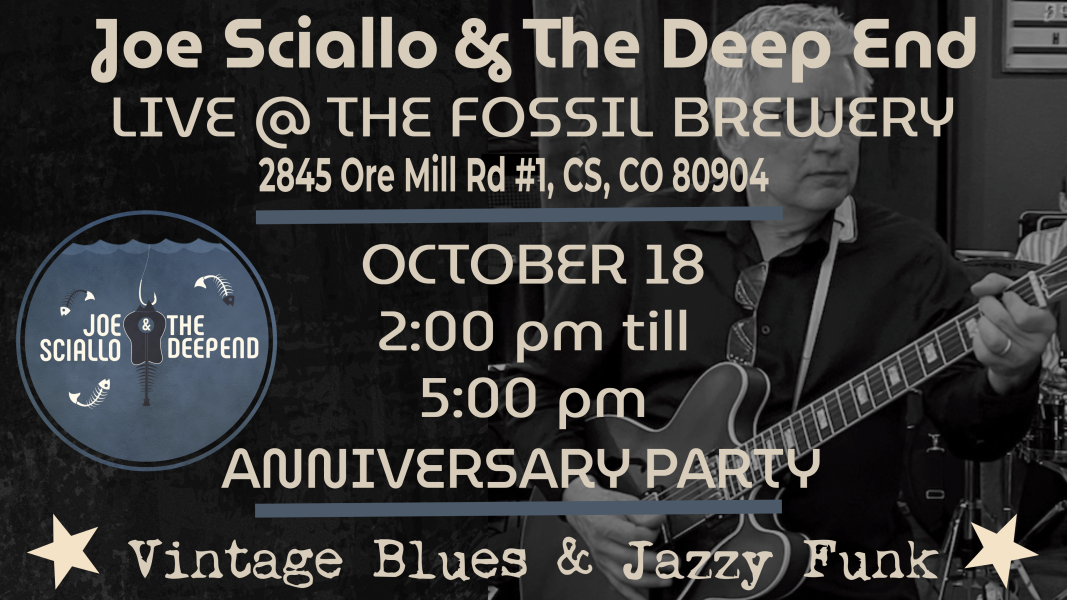 The Fossil has been crafting fine beer in Colorado Springs since 2014. The Deep End is proud to help celebrate their 11th anniversary. What could be a more natural way to spend a Saturday afternoon, than lifting a cold craft beer and listening to some down home blues.