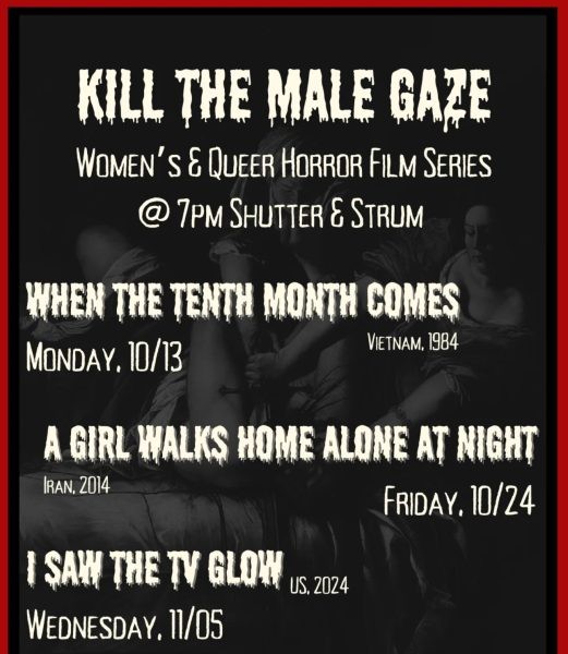 Join us on October 13th, October 24th, and November 5th at 7 pm to watch When the Tenth Month Comes (1984), A Girl Walks Home Alone at Night (2014), and I Saw The TV Glow (2024). All welcome. $5 suggested donation. Snacks provided.