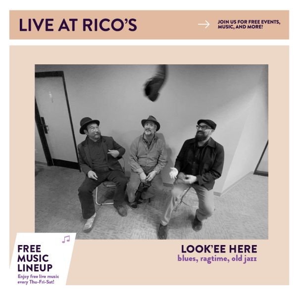 Look’ee Here is a three-piece band playing a different kind of blues. Drawing from Piedmont, Delta, and Chicago traditions — with shades of ragtime and old-time jazz — they explore a wide range of sounds using guitars, banjo, horns, harmonica, washboard, and upright slap bass.