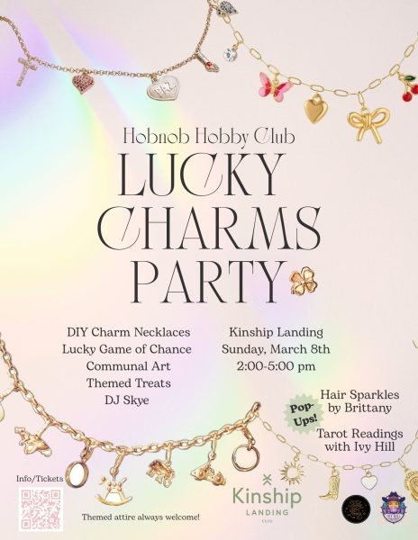 Feelin' lucky? Celebrate St. Patrick's day with a little craft party! Make your own gold-plated stainless steel charm necklace with up to nine charms of your choosing. Option to add a charm keychain (or 2) with up to five charms.