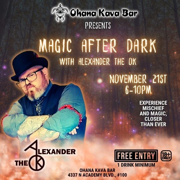 Magic After Dark is an immersive, up-close night of illusions at Ohana Kava Bar — featuring the mind-bending talents of Alexander the OK.