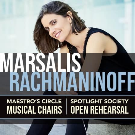 This intimate gathering for Marsalis / Rachmaninoff is only offered to Maestro’s Circle and Spotlight Society members in recognition of their wonderful encouragement. Maestro’s Circle members are invited to Musical Chairs, where they sit onstage, elbow-to-elbow with the musicians and experience the intensity of a live performance. Spotlight Society members sit in the audience to experience a live rehearsal.