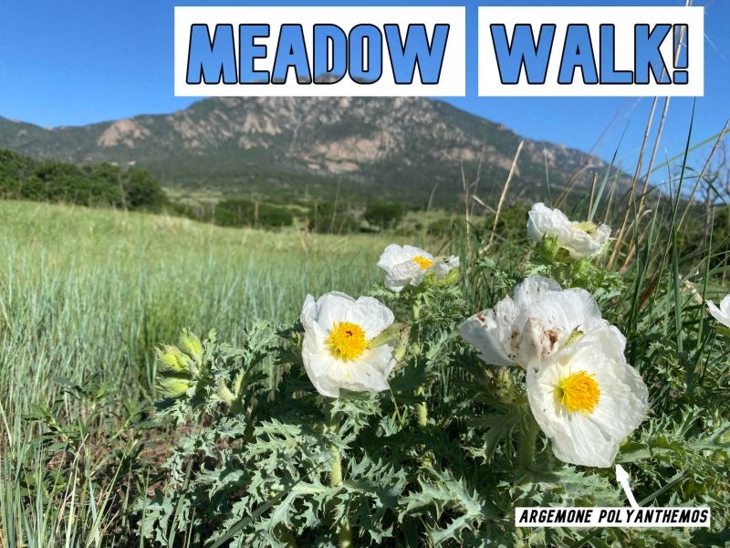 The meadow nature walk is a relatively short guided nature walk through some of our park’s pristine natural environments. Learn about the ecology of meadows and open spaces with park naturalist Sam Owens. The walk takes place in Cheyenne Mountain State Park, starting at the Prairie Falcon Amphitheater parking at 10:00 am at select dates in July. Reservations are available on CPW connect, but walk-ins are allowed. No fee is needed for the walk, but the entry fee to the park is still required. Walk will commence rain or shine, so participants are advised to come prepared for weather and trail conditions. Appropriate footwear and clothing is needed, as the trail is not paved.