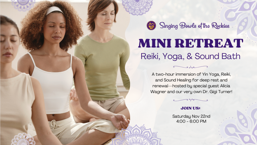 Guided by Alicia Wagner of SolRise Collective and Dr. Gigi Turner of Singing Bowls of the Rockies, this experience blends gentle postures, subtle energy work, and the resonance of crystal singing bowls, gongs, and chimes to support deep rest and inner harmony.