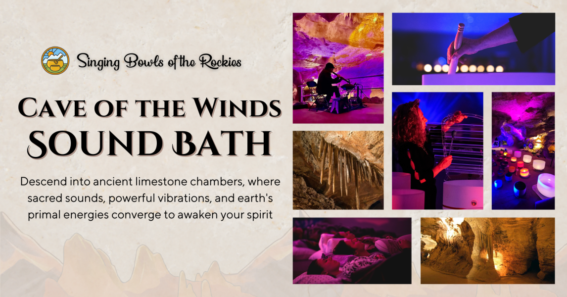 Step into the vast, echoing chambers of Cave of the Winds and experience the raw power of nature amplified by the powerful vibrations of sound. Beneath towering rock formations sculpted over millions of years, let soothing sounds of Tibetan and Crystal Singing Bowls, Gongs, Native American Flute, Guitar, Hand Pan, and more wash over you. Guided by three musicians - Dr. Gigi Turner, PsyD, Dave Patrick, and Steve Manzo - this sound bath harnesses the cave’s natural acoustics to envelop you in waves of sound that calm the mind, relax the body, and restore balance.