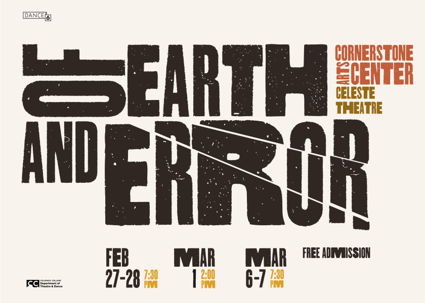 The Colorado College Department of Theatre & Dance proudly presents its annual Dance6 production, "Of Earth and Error".
