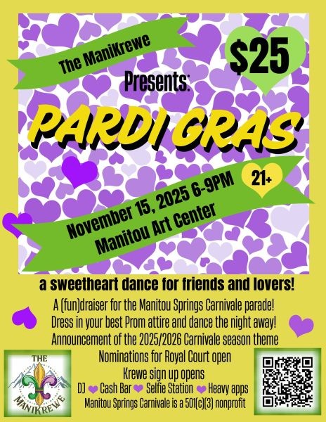 You will have an opportunity to get your early bird ticket to the 2026 CarniBall! There will be 2025-2026 Carnivale reveals, info on volunteering, exclusive announcements and giveaways! Information will be available for participating krewes, such as Krewe 101 and where to order your krewe’s beads/throws. Manitou Springs Carnivale is a 501(c)(3) nonprofit.
