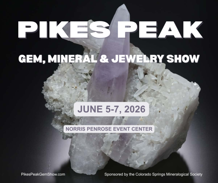 For three days in early June, the Colorado Springs Mineralogical Society sponsors the annual Pikes Peak Gem, Mineral & Jewelry Show, where show-goers can explore a dazzling array of gems, minerals, fossils, and unique hand-crafted jewelry pieces. Join us June 5-7, 2026, and discover stunning pieces from talented artisans and vendors, learn about the fascinating worlds of minerals, fossils, jewelry making, and rockhounding, and maybe even find the perfect piece to add to your collection! Young prospectors will enjoy gold panning, exploring, and learning through a scavenger hunt, and connecting with our Pebble Pups group.