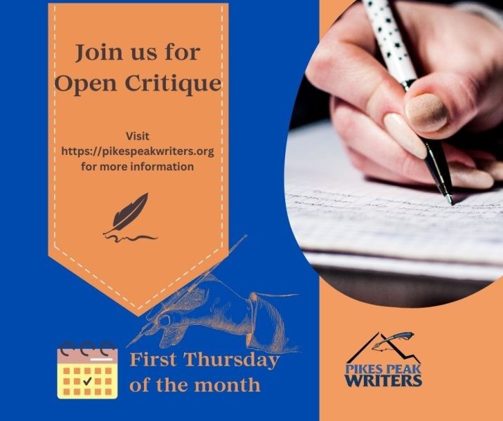 Please visit https://pikespeakwriters.org/ and find Open Critique on the calendar for guidelines and more information.
