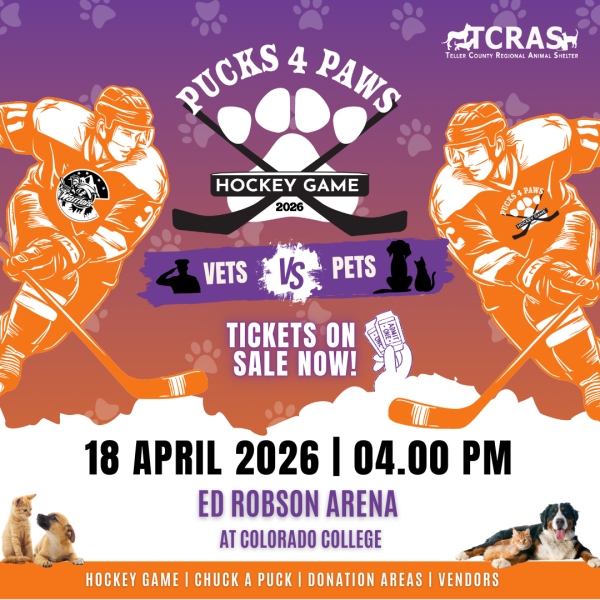 Join us for the 2nd Annual Pucks for Paws Charity Hockey Game! Watch the Colorado Warriors take on the TCRAS Pets Team in a fast-paced, family-friendly matchup dedicated to raising vital funds for the animals at TCRAS. This event highlights the powerful bond between people and animals, especially our service members, and features plenty of fun off the ice, including great food, a Chuck-a-Puck game, and a special appearance by the Mayor of Divide candidates.