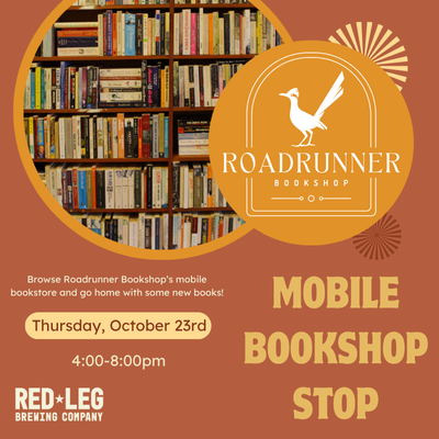 We’re turning pages and pouring pints! Join us for a cozy afternoon with Roadrunner Bookshop, a mobile bookstore bringing a curated selection of books, tote bags, stickers, and literary goodies right to Red Leg.