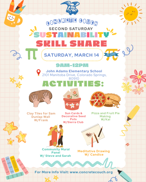 We'll be painting a large public art panel, making pies for pi day, making clay tiles, and enviro activities with the Sierra Club!