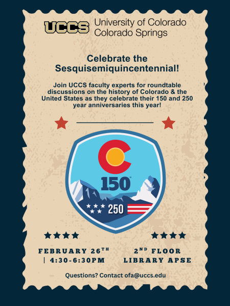 Four UCCS faculty experts will lead engaging roundtable conversations exploring the people, stories, and forces that have shaped Colorado and the nation. Participants will have the opportunity to discuss themes connected to heritage, democracy, place-making, and the evolving identity of our state within the broader American narrative. These statewide commemorations encourage communities to honor the fullness of Colorado’s shared history while envisioning a more inclusive and vibrant future.