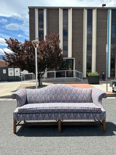 Our team selected and purchased a vintage sofa. This exhibition asked creatives for Abstract Art, using the exact pictured sofa as their muse. Artists were allowed to submit up to three pieces for consideration. Works must have been made to pair with only the sofa pictured.