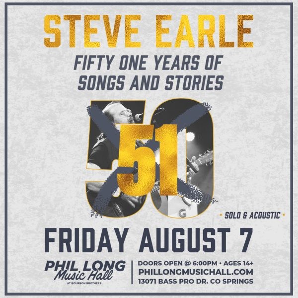 In 2020, Earle was inducted into the Nashville Songwriters Hall of Fame. And in 2023, Steve was honored by the Bruce Springsteen Archives & Center for American Music. Steve’s latest album, “Alone Again (Live)”, released on July 12th, 2024. Most recently, Steve was honored with an invitation to join the Grand Ole Opry and was officially inducted on September 17th, 2025.
