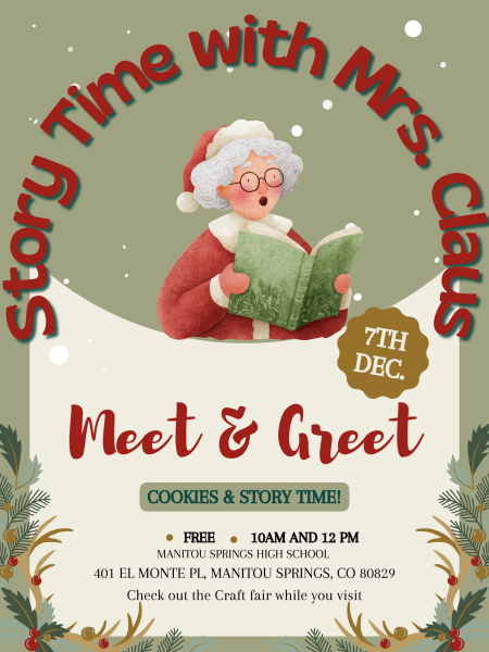 Join Mrs. Claus for stories and cookies at Manitou Springs High School!