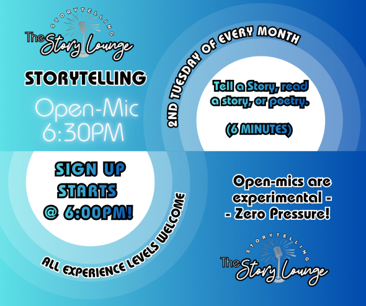 Storytelling Open-mic happens the 2nd Tuesday of every month!