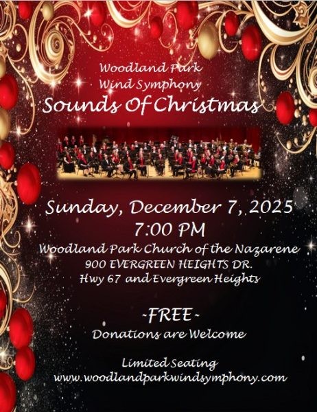 A special feature for over 20 years in all the Woodland Park Wind Symphony concerts, Craig Harms, Director, has prepared videos which complement the musical performances. Photographs by Wind Symphony members will be featured in the videos. Two large TV screens show the video so that all members of the audience can see them.